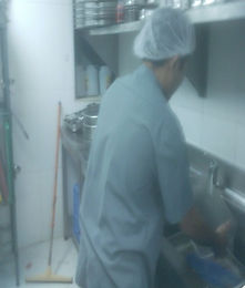 Prepare a variety of food items for cooking. Stack and store food supplies, equipment, or other utensils in the kitchen. Clean any used kitchenware (e.g., knives) or dishes.